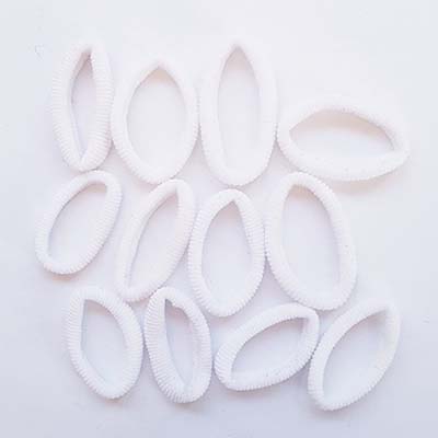 Kleine badstof elastiekjes. Voor staartjes, vlechtjes, noem maar op. matig tot goede elasticiteit. 12 stuks in een zakje